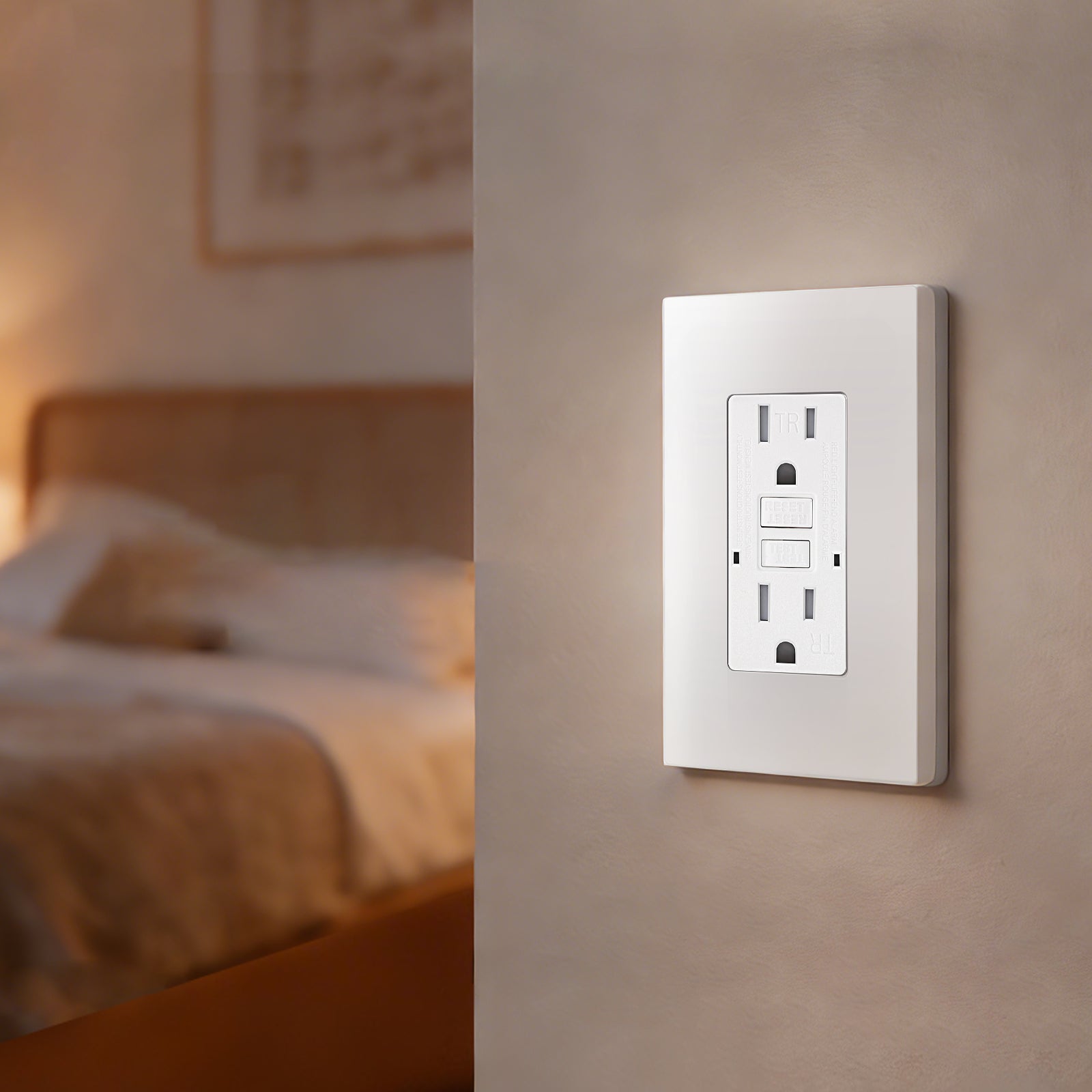 - Type: TR GFCI outlet (tamper-resistant + ground-fault protection)